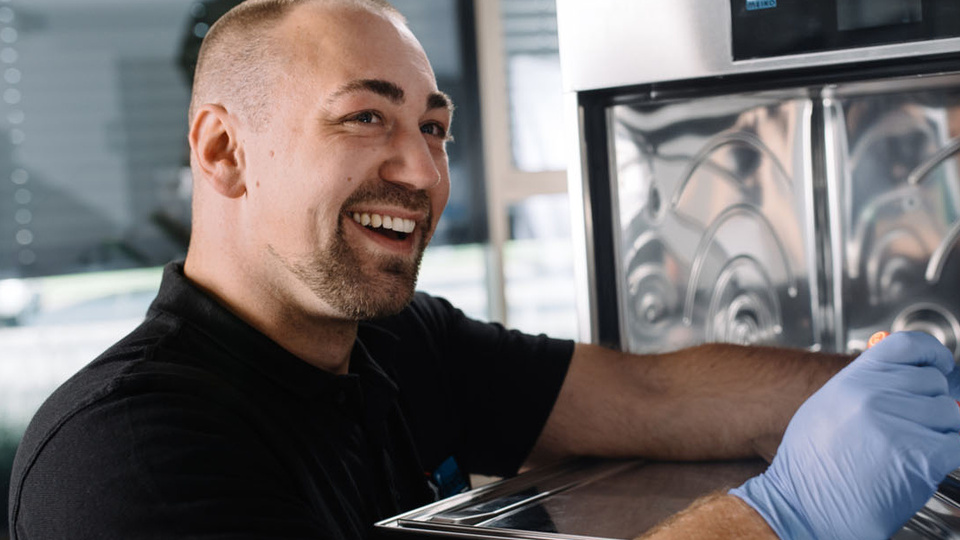 An meinem Job bei MEIKO liebe ich die Spontanität und Abwechslung. Denn jeder Auftrag ist anders. Mal geht es um klassische Wartungs- oder Servicethemen, mal um Hilfestellungen bei Reinigungs- oder Chemiefragen. Die Kunden geben den Takt vor.