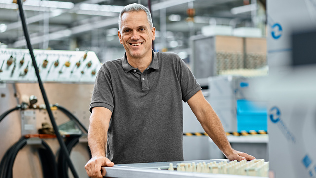 Bei ihm stehen nicht die Maschinen, sondern die Menschen im Zentrum. Denn als freigestellter Betriebsrat kümmert er sich seit 2022 hauptberuflich darum, dass unsere Mitarbeitenden für all ihre Anliegen eine vertrauliche Anlaufstelle haben.