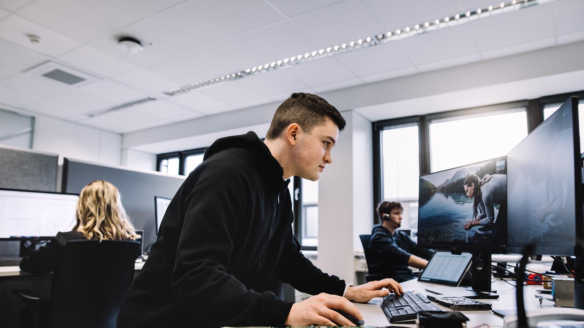 Bei uns arbeitest Du mit aktueller Technik in ergonomisch optimierter Umgebung. Das sorgt für Effizienz und ein angenehmes Arbeiten – Tag für Tag.